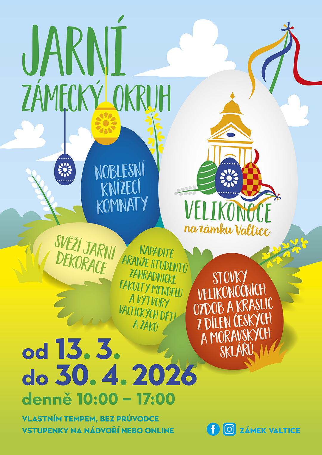 Od úterý 1. dubna je otevřena také hlavní pokladna s prodejnou suvenýrů, od 1. dubna budou probíhat již také prohlídky hlavním prohlídkovým okruhem, speciální program na zámku Valtice již tradičně chystáme na celý velikonoční víkend.