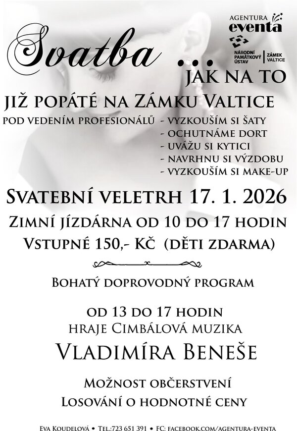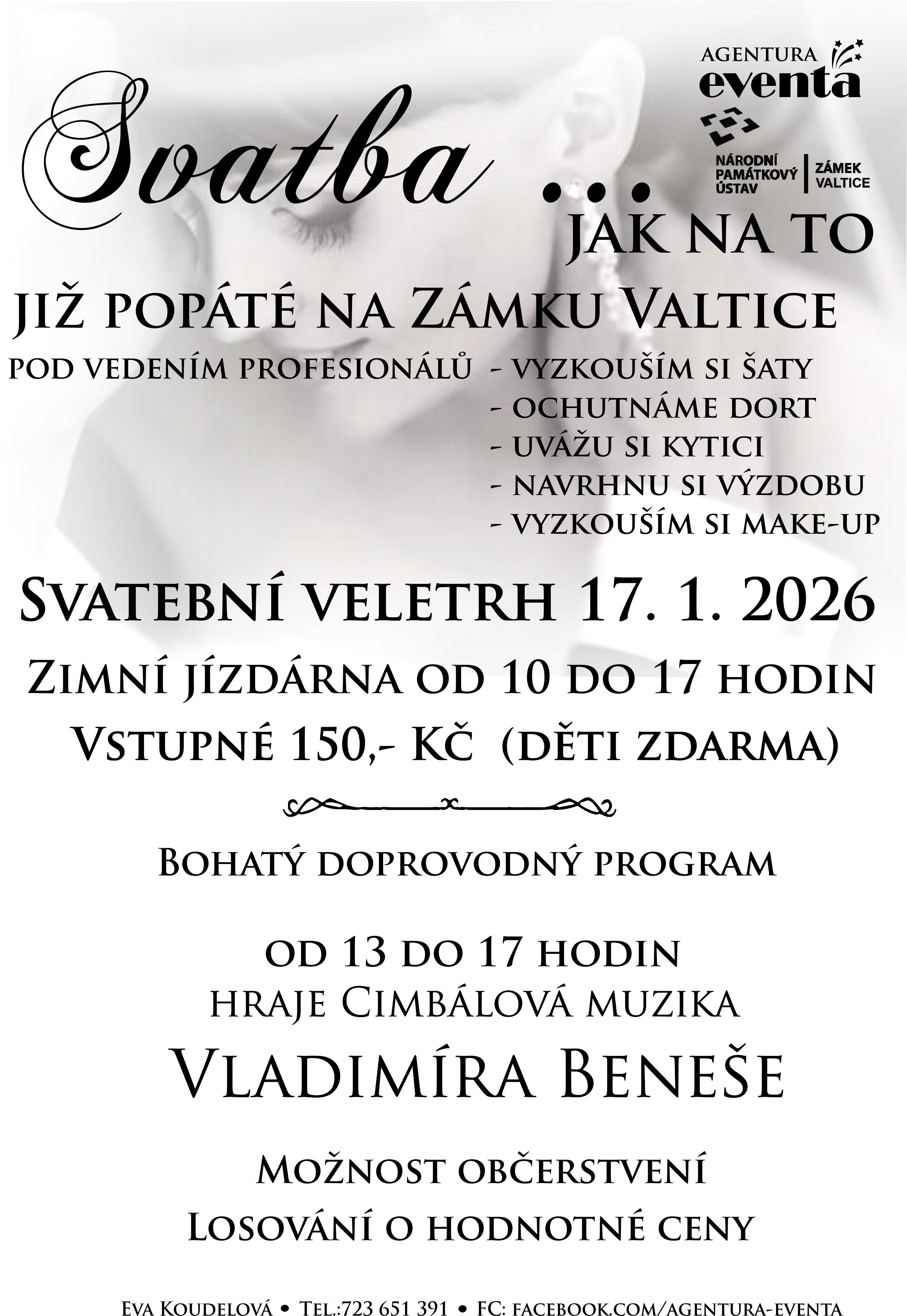 V sobotu 17. ledna od 10:00 do 17:00 se v zámecké Zimní jízdárně uskuteční Svatební veletrh, který nabídne bohatý program nejen pro ty, kteří plánují svatbu v roce 2026, ale pro všechny příznivce společenských šatů, líčení či slavnostních květinových výzdob.