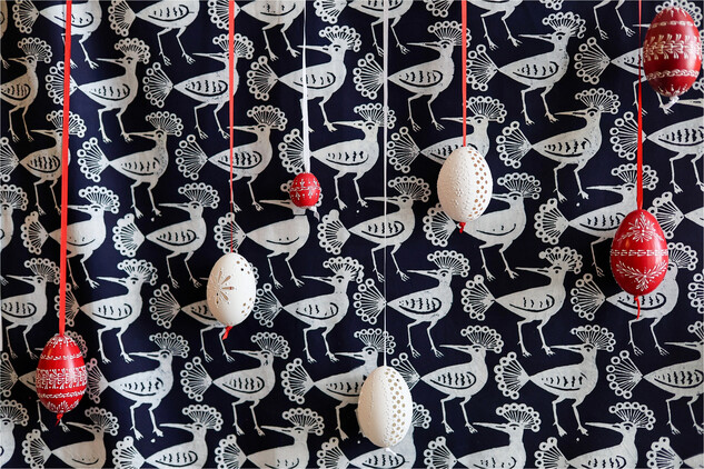 - desítky ručně vyráběných a zdobených skleněných kraslic, vajíček, ptáčků a vážek z dílen tuzemských výrobců