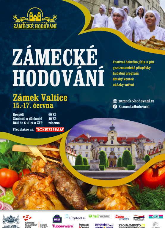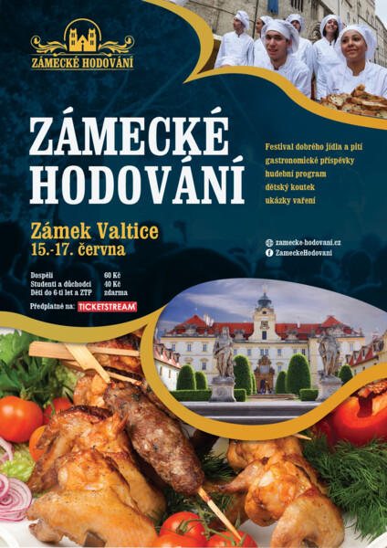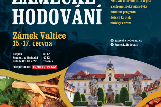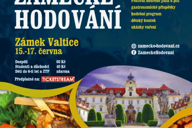 Na dvoře zámku Valtice se od pátku 15. do neděle 17. června uskuteční ZÁMECKÉ HODOVÁNÍ, které nabídne bohatou přehlídku dobrého jídla, doplněnou o doprovodný program.