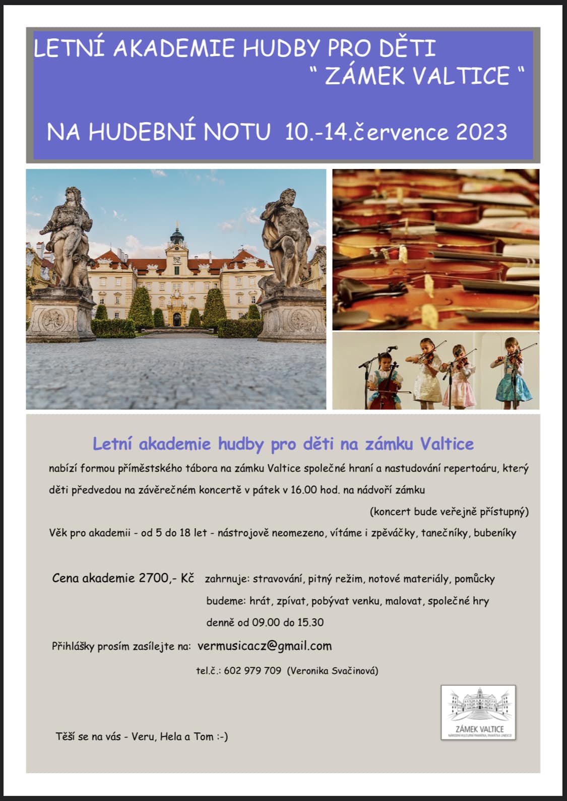 Kontakt pro přihlášky či dotazy: Veronika Svačinová, telefon 602 979 709, vermusicacz@gmail.com