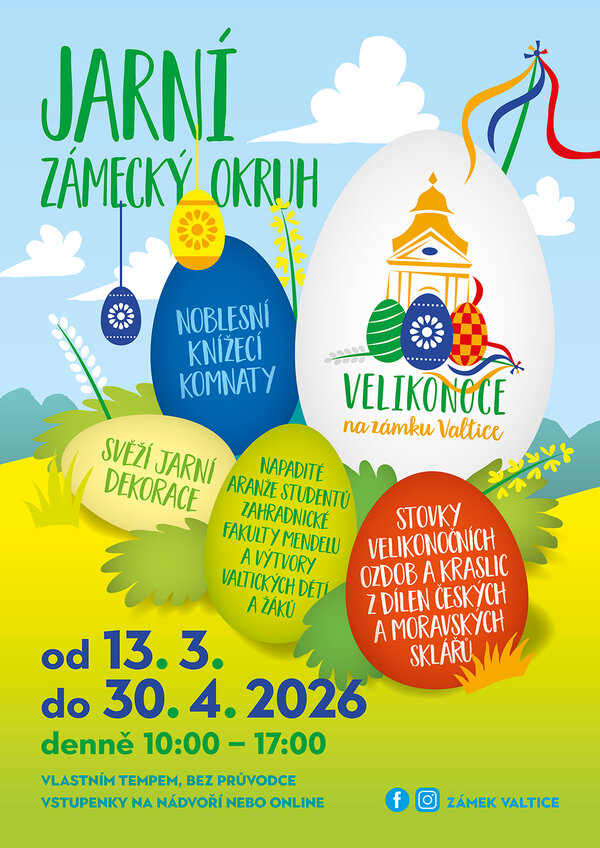 Od úterý 1. dubna je otevřena také hlavní pokladna s prodejnou suvenýrů, od 1. dubna budou probíhat již také prohlídky hlavním prohlídkovým okruhem, speciální program na zámku Valtice již tradičně chystáme na celý velikonoční víkend.